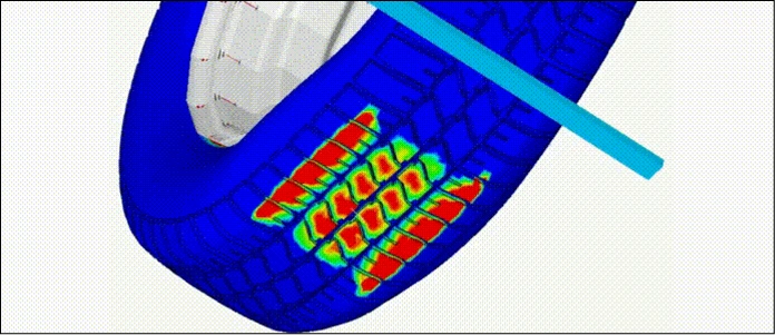 While a tyre runes over o water film the tyre must have the capabilities to channelized the water through its groove to maintain radial reaction force required for the vehicle stability. This analysis assist to understand the intricacies of the event by evaluating the changes in footprint pressure distribution, channelized-water phenomenon and radial force variation.