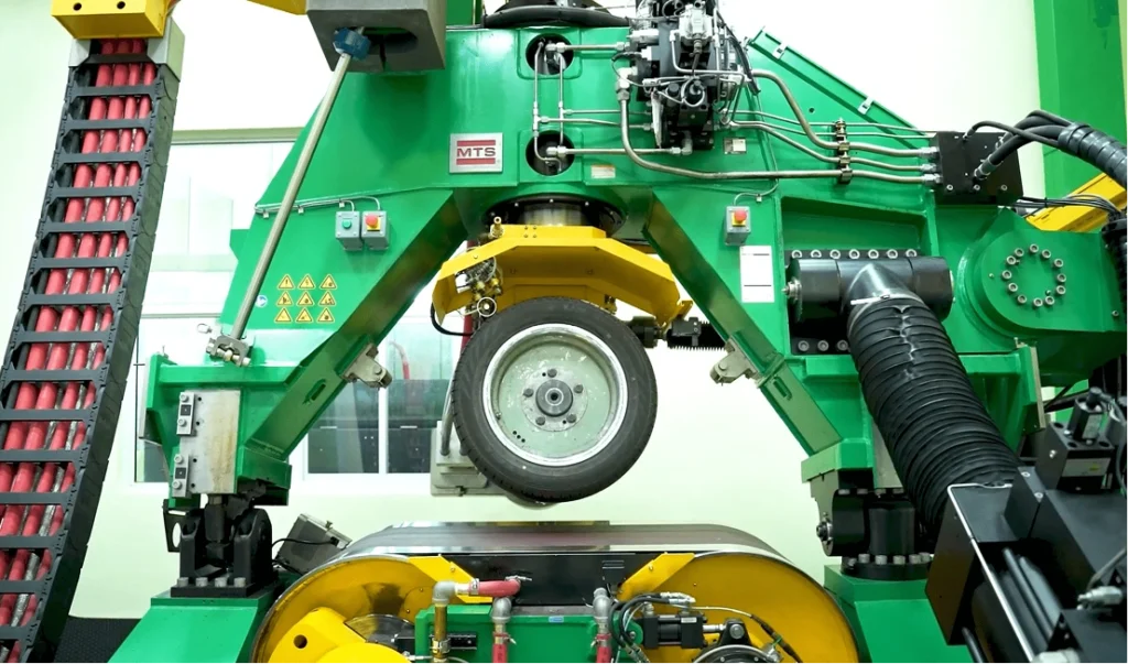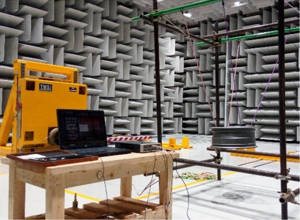 The Modal Analysis is a predictive Tool for vibration and structural Engineering. HASETRI’s ISO certified Semi Anechoic Chamber houses the facility to conduct Modal Analysis on structures and extract its Modal Parameters- Modal Frequencies, Damping and the Mode Shapes. Tyre Modal Analysis is conducted as per SAE Standard, and the modal frequencies for various directions estimated. The Experimental Mode shapes can be compared with the Finite Element model for the same tyre.